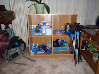 We went through and numbered each piece of gear that we might possibly need sent to us on the trail. In my parents living room, we sorted these items into categories like clothing, shoes, toiletries, electronics, kitchen, first aid and misc. gear. Our ice axes, bear canister, fishing gear and other section specific gear are also included.